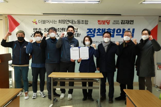 진보당과 희망연대노조는 ‘미디어기본권 보장과 미디어-플랫폼자본 공적 책임 부여’, ‘유료방송 지역성·공익성 강화’, ‘방송·통신 노동시장 규제와 노동기본권 보장’, ‘콜센터 상담노동자 노동기본권 보장’ 등 방송·통신·콜센터 공공성 강화와 노동기본권 보장을 위한 정책을 협약했다.
