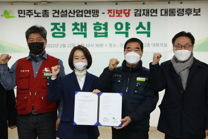 이어 김재연 후보는 전국건설산업노동조합연맹(이하 건설산업연맹)과 정책협약을 맺었다.