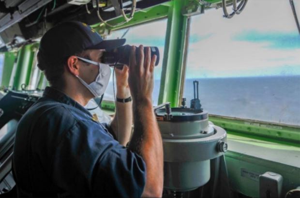![]() ▲ <사진 2>위쪽사진은 2021년 4월 4일미국해군정보실이홈페이지에실은사진이다.주일미해군제7함대미사일구축함머스틴호함장과부함장이함상에서부근을지나가는중국항공모함랴오닝호를멀건이바라보는장면이다.함장과부함장은마땅히조타실안에서작전통제를해야하는데,엉뚱하게도함상관측병배정석에서쌍안경을목에걸고중국항공모함을멀건이구경한것은의도적인연출장면이다.아래쪽사진은2020년 6월 4일대만해협을통과하는미국해군미사일구축함럿셀호조타실에서해군소위가쌍안경으로전방을관측하는장면이다. 2021년 4월 3일상하이앞바다에살짝들어갔다가필리핀해서북해역으로도망쳐나온머스킨호는이튿날랴오닝호항모전투단으로부터 50km이상떨어진,함포사거리밖에서꽁무니를졸졸따라다니며랴오닝호항모전투단을감시하고있었다.문제의사진은바로그런정황속에서연출된장면을담은것이다. |
