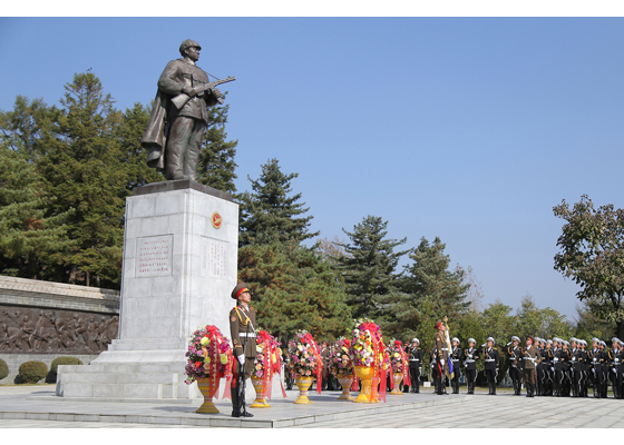 경애하는 최고령도자동지께서는 제국주의침략자들을 격멸하는 성전에서 죽음도 두려워하지 않고 고귀한 청춘과 생명을 다 바쳐 영용하게 싸운 중국인민지원군 장병들의 붉은 피는 우리 조국땅 곳곳에 스며있다고 하시면서 우리 당과 정부와 인민은 그들의 숭고한 넋과 고결한 희생정신을 영원토록 잊지 않을것이라고 말씀하시였다.