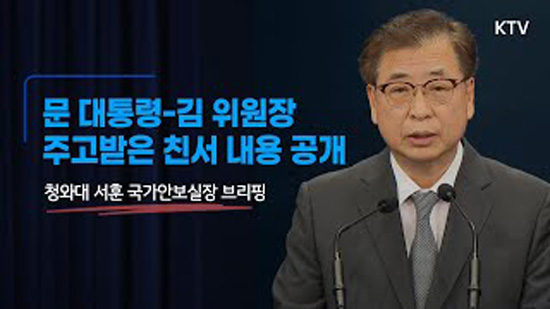 서훈 국가안보실장은 이날 오후 4시 청와대 브리핑을 통해 “오늘 오후 북측에서 보내온 통지문을 공개한 이후 남북 정상 간의 친서 교환 문제에 대한 국민의 관심이 커짐에 따라 문재인 대통령께서는 최근 주고받은 친서 내용도 있는 그대로 모두 국민들에게 알려드리도록 지시하셨다”라며 친서 전문을 공개했다.