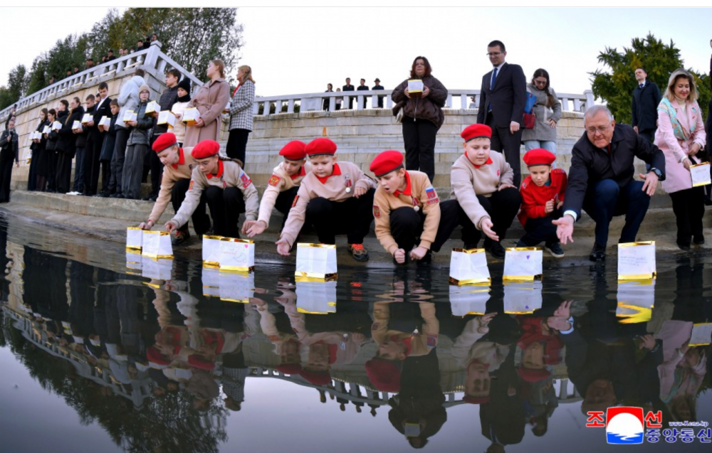 [북] 로씨야 꾸르스크해방작전에 참가한 조선인민군 군인들에 대한 감사와 존경이 담긴 종이등불배들을 띄우는 의식 평양에서 진행