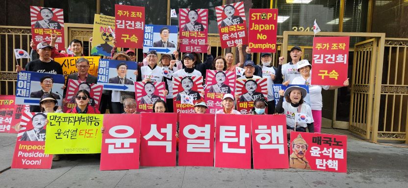 지난 해 10월 이태원 참사 이후 부터 엘에이 총영사관 앞에서 1년여간 윤석열 퇴진 시위를 매주 벌이고 있는 ’LA 촛불행동‘ 회원들과 ‘엘에이 이재명 지지모임(엘이재)’ 회원들 30여명은 LA 현지 시간 9월 30일 오전 11시에 영사관 앞에서 모여 이재명 더불어민주당 대표의 영장 기각 소식에 환호하며 이재명 대표의 이름을 연호했다. 이재명 대표가 ”나라의 미래와 바른 정치를 세우고 이념보다 나라 살림을 챙겨야 한다“는 요구를 내걸고 24일간 목숨을 건 단식을 할때 재외동포 200 여명도 동조단식에 참여한바 있다.
