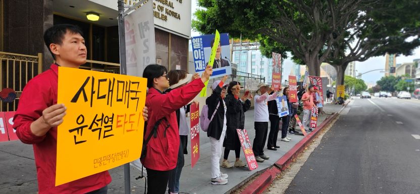 LA 촛불행동, 이재명 지지모임 총영사관 앞에서 시위
