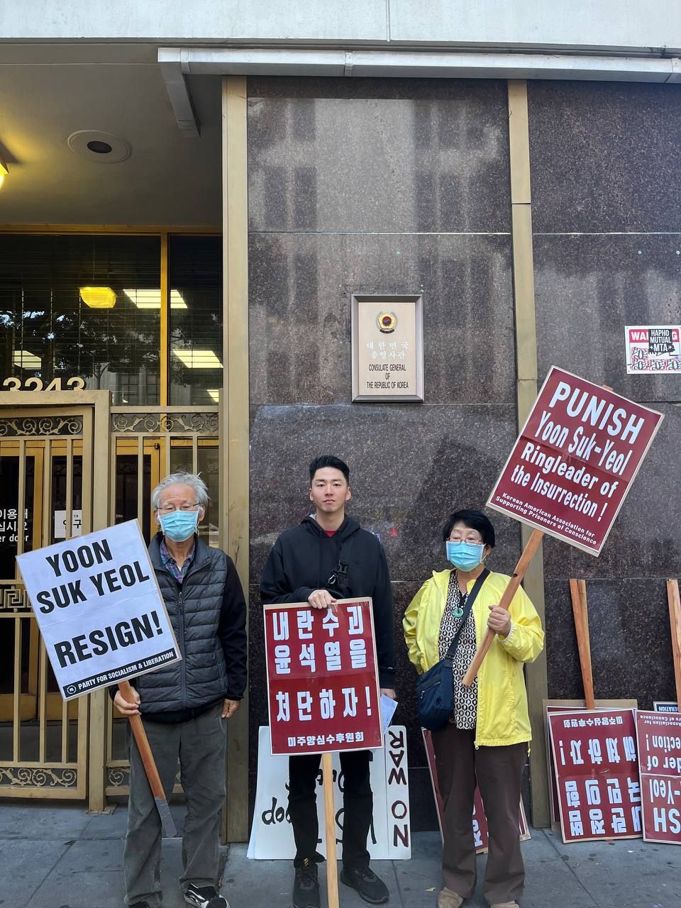엘에이촛불과 미주양심수후원회를 비롯한 엘에이동포들과 미국의 반전평화 단체들인 PSL( 사회주의 해방당), Harriet Tubman Center for Social Justice, PLA(팔레스타인 해방운동), 동포청년단체인 노둣돌이 연대하여 내란수괴 윤석열 처단을 외쳤습니다.