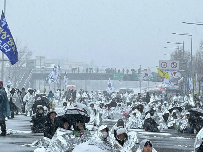 한남동 윤석열 관저 앞 대로에서 2박3일 동안 눈보라가 날리는 강추위의 밤을 이겨내며 윤석열 체포를 외친 민주노총과 촛불시민들 (자주시보)